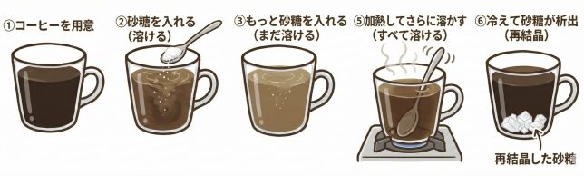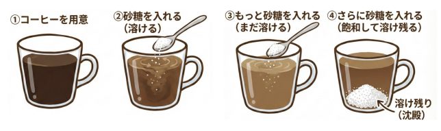コーヒーの底に、砂糖が沈澱していますね。これ以上溶けきれなくなった砂糖が、底に溶け残っているということですか?