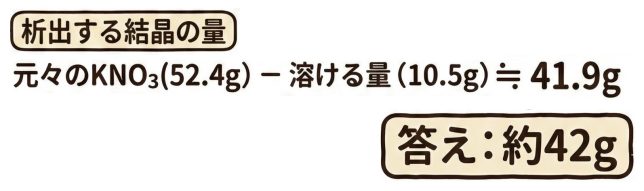60℃の時の【実際】の溶質が52.4gでしたから、差の41.9gが析出ですね!