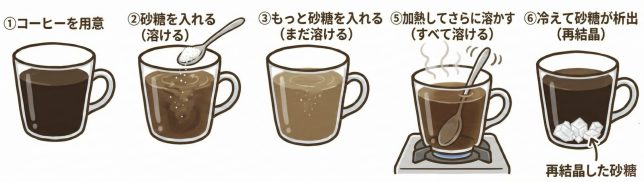 コーヒーの底に、砂糖が沈澱していますね。これ以上溶けきれなくなった砂糖が、底に溶け残っているということですか?